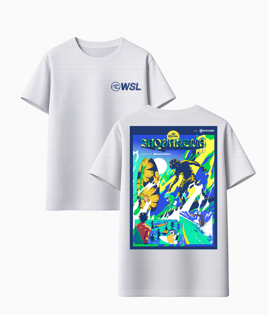 Camiseta estampada com o pôster oficial do Saquarema Pro By Corona 2024. Relembre os momentos incríveis e emocionantes de mais uma etapa do World Surf League.