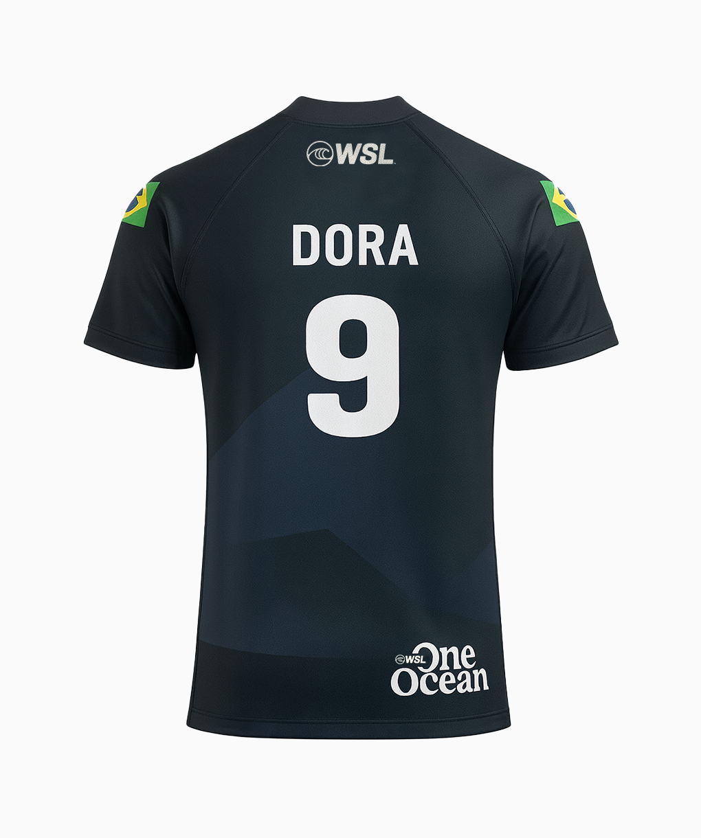 Apoie seu atleta favorito e vista com orgulho sua camisa autêntica da WSL. Compre a variedade de camisas de atleta, estilo Jersey, da WSL. Camiseta Yago Dora Campeão Mundial.