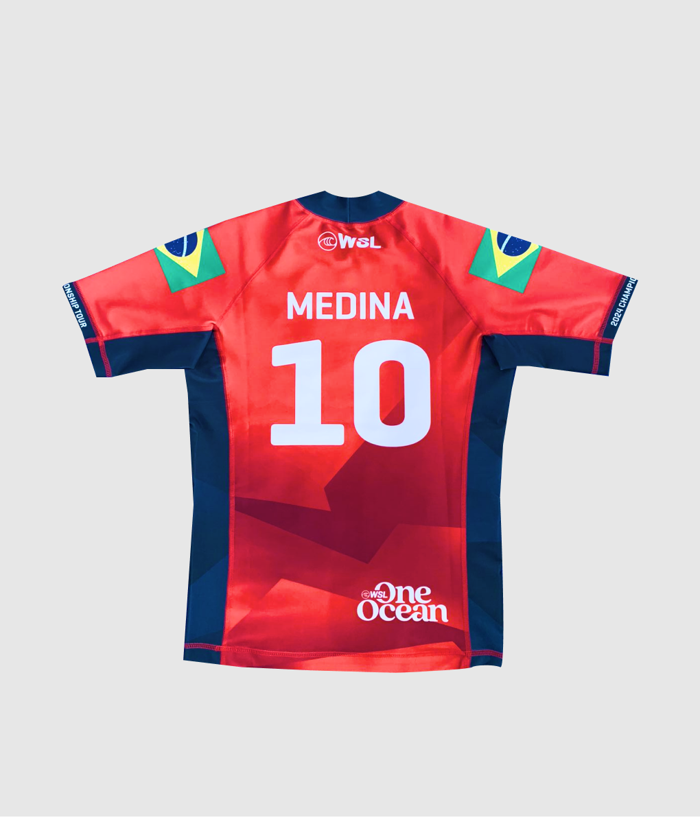 Apoie seu atleta favorito e vista com orgulho sua camisa autêntica da WSL. Compre a variedade de camisas de atleta, estilo LYCRA, da WSL. Camiseta infantil Gabriel Medina 10 Tricampeão Mundial.